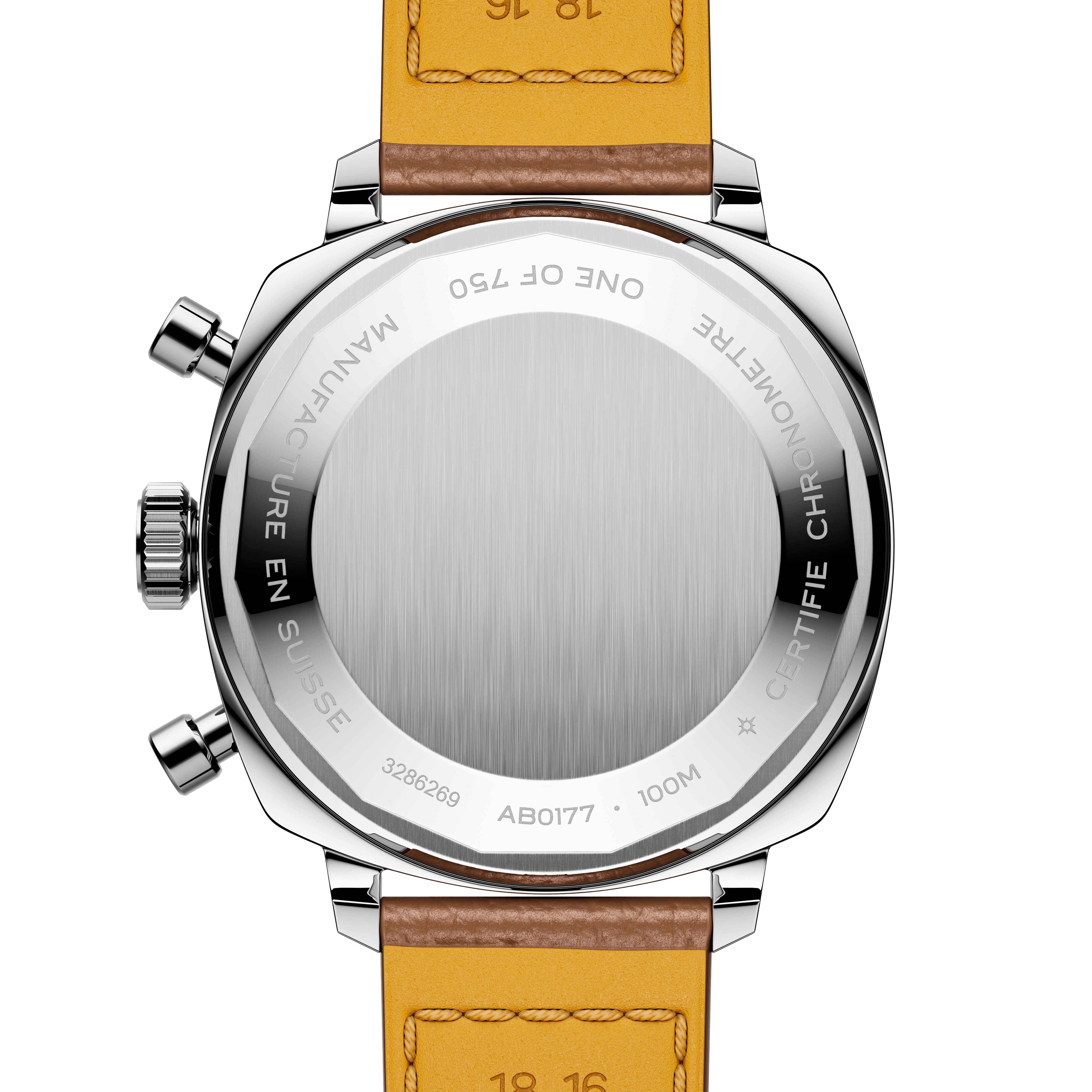 The cushion-shaped case, bold tachymeter scale, and distinctive “squircle” subdials evoke the high speeds and split-second decisions of the race route. At the heart of the dial is the signature “surfboard” motif—an elliptical design straight out of the Top Time archives, inspired by classic-car dashboards.