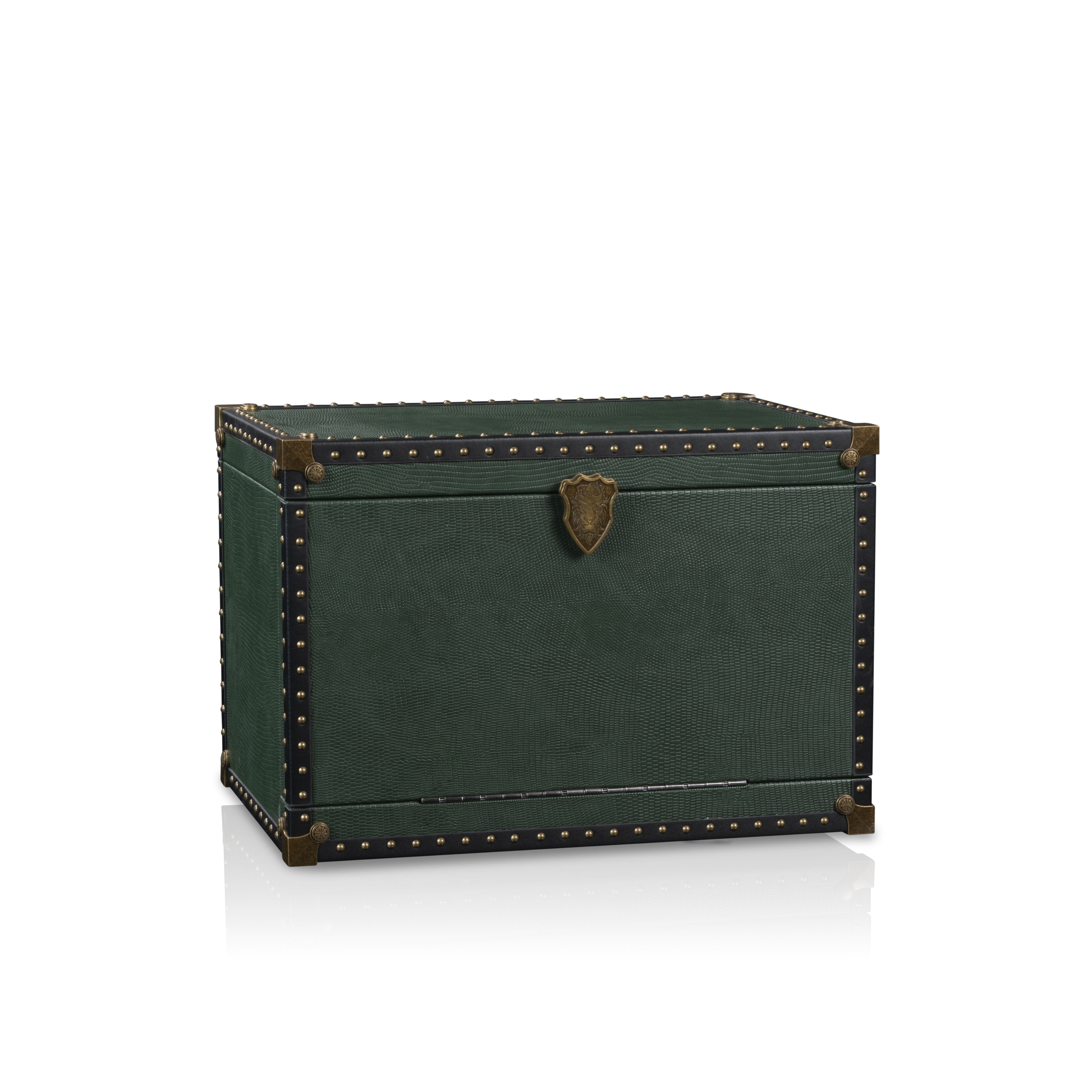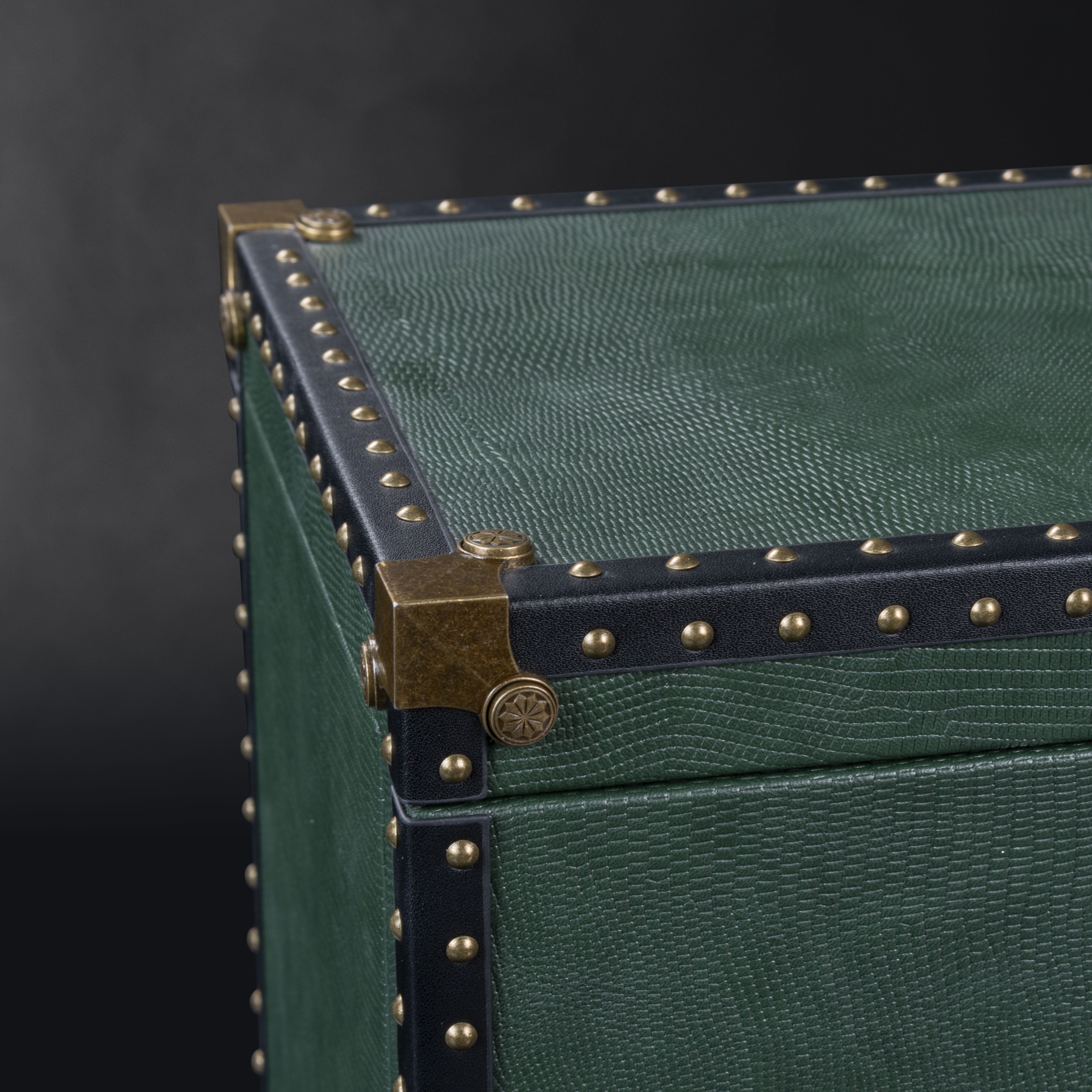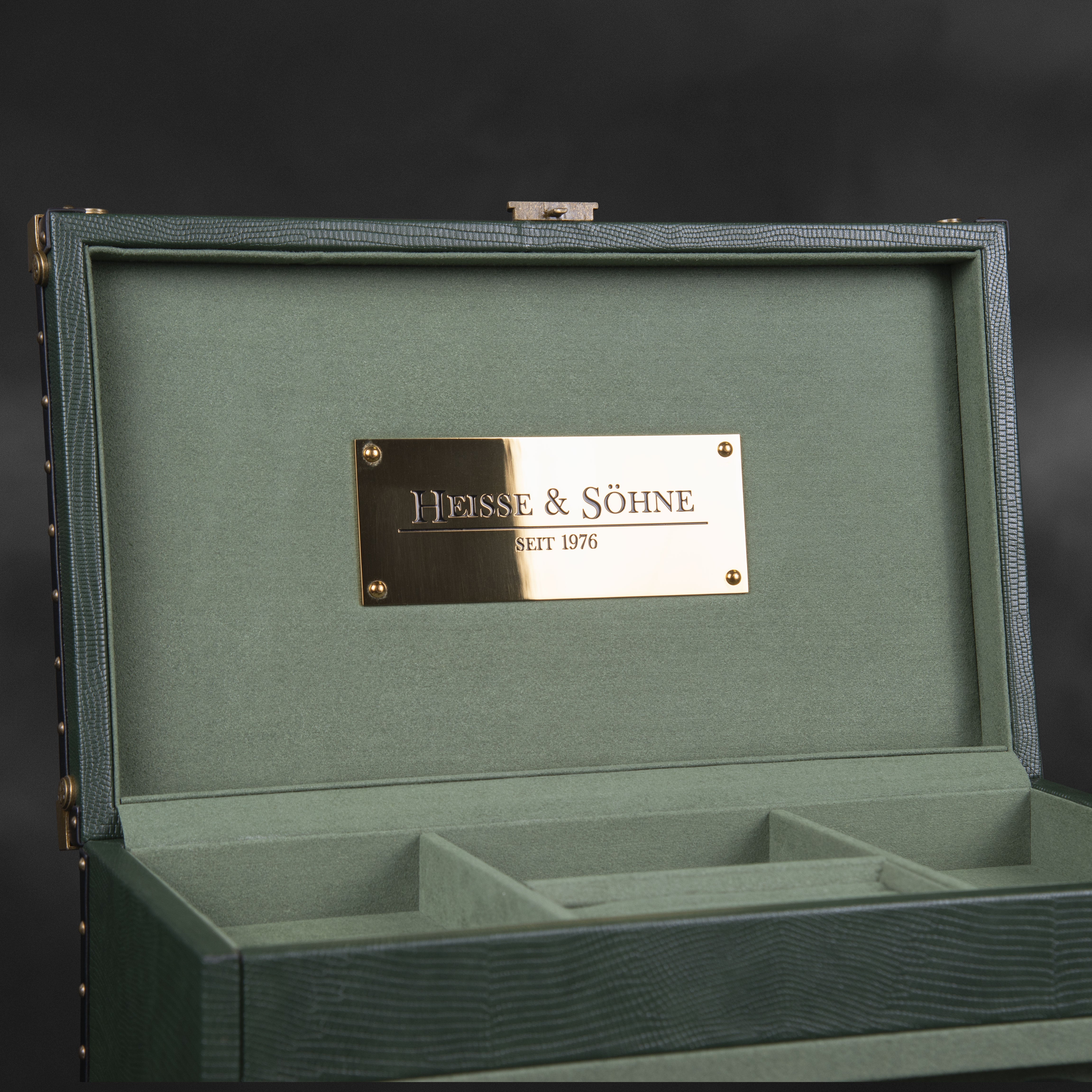 The Verne series, inspired by Victorian style and Steampunk design, combines luxurious aesthetics with advanced technology. The solid case, covered with vegan imitation leather and decorated by hand with rivets, offers space for three automatic watches. Additional jewelry and valuables can be stylishly stored in the top shelf. With technologies such as Premium-Drive, LCD-Control, Smart-Sleep and Interior-Light, the series guarantees a quiet and gentle winding as well as a perfect presentation.
