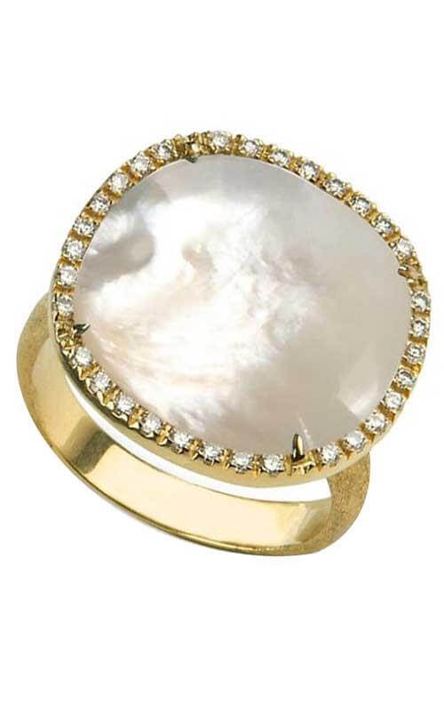 Marco Bicego Jaipur Mother-of-Pearl, Diamonds and Gold Ring (AB451-B2-MPW). 18k yellow gold with pave diamonds (0.24ct) and a large Mother-of-Pearl stone. Inspired by a tropical Indian sunset and the stone-cutting heritage of Jaipur. Hand engraved by Italian artisans.