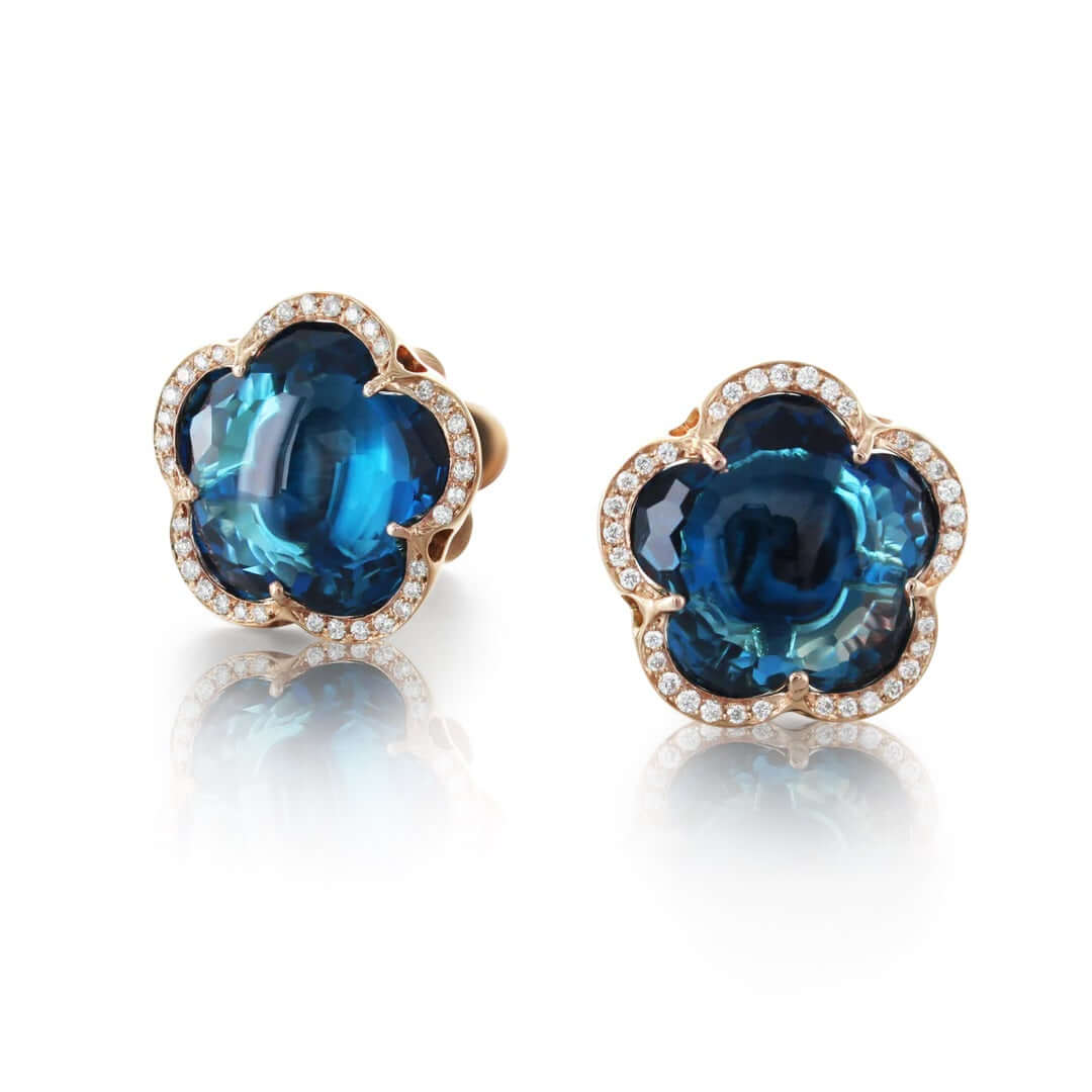 Pasquale Bruni Bon Ton Earrings 15308R. Earrings in 18k Rose Gold with London Blue Topaz and Diamonds.