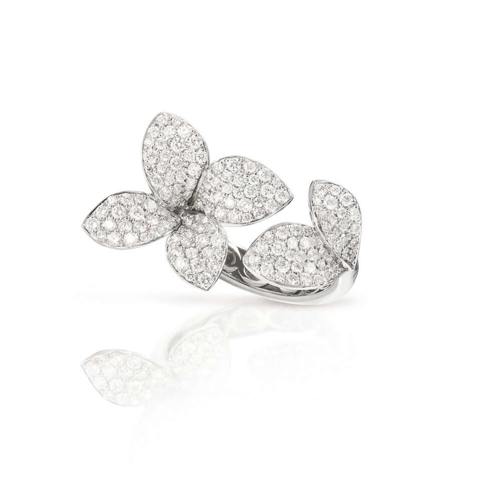 Pasquale Bruni Giardini Segreti Ring 16691B. Six Leaves Small Flower Ring in 18k White Gold with Diamonds.