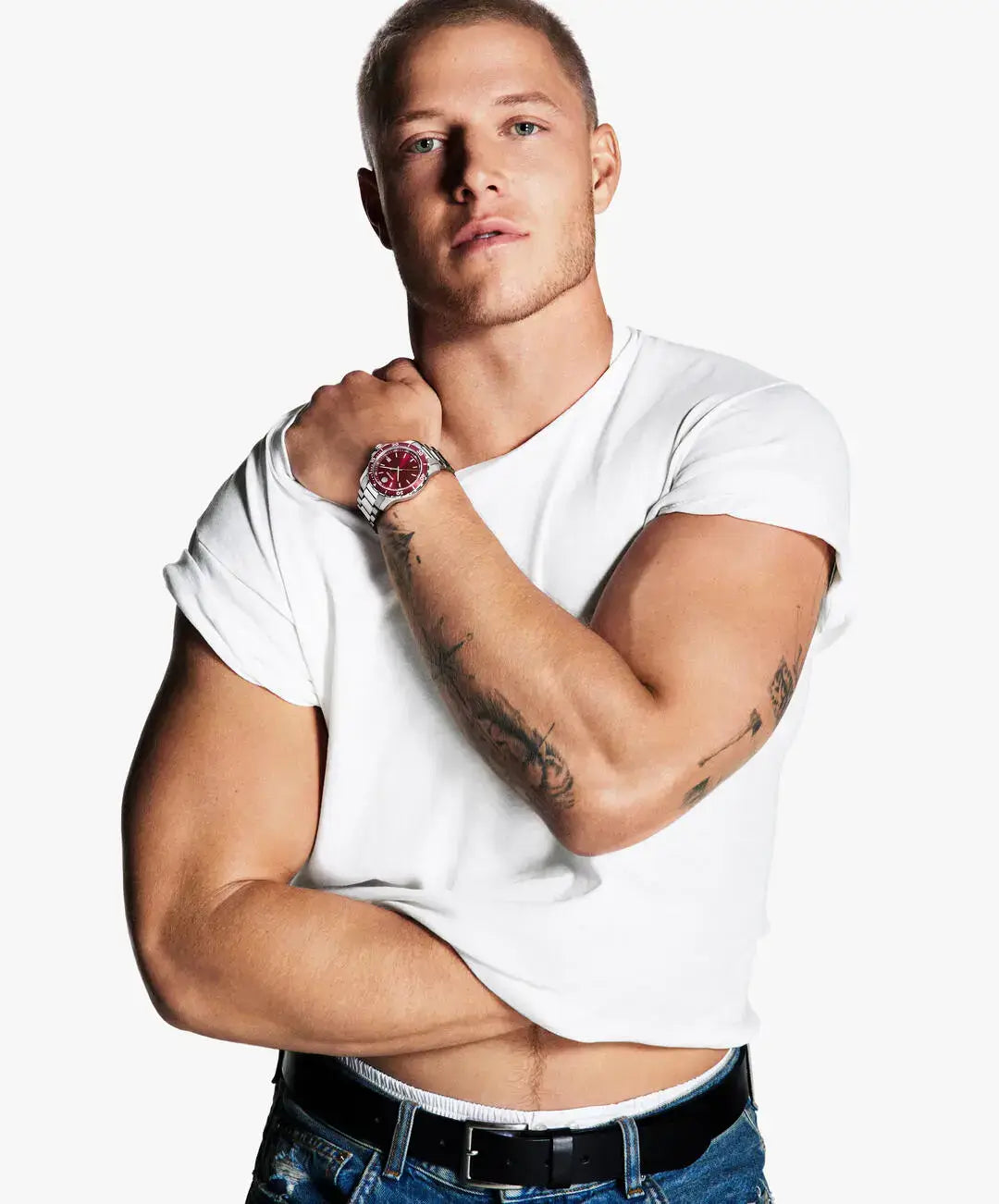 The Series 800 is a modern take on a timeless sport-inspired silhouette. This 40mm watch features a red dial, unidirectional rotating bezel, and Swiss Super-LumiNova® accents.