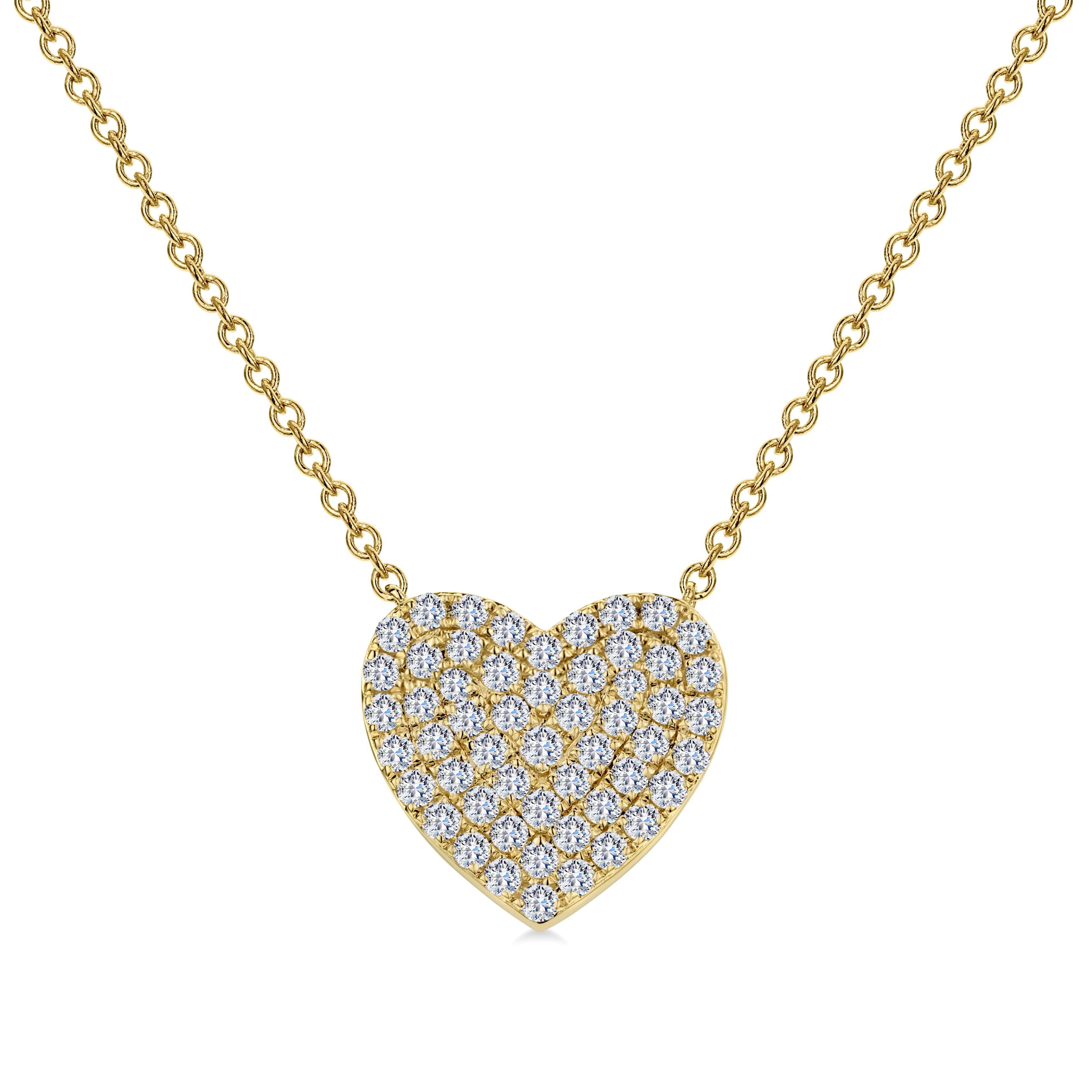 Bandiera Jewellers Diamond Heart Necklace 1.00ct ANK-20561-Y. 18kt yellow gold diamond heart pendant on necklace. 54 diamonds, 1.00cts. Necklace is 18" in length.