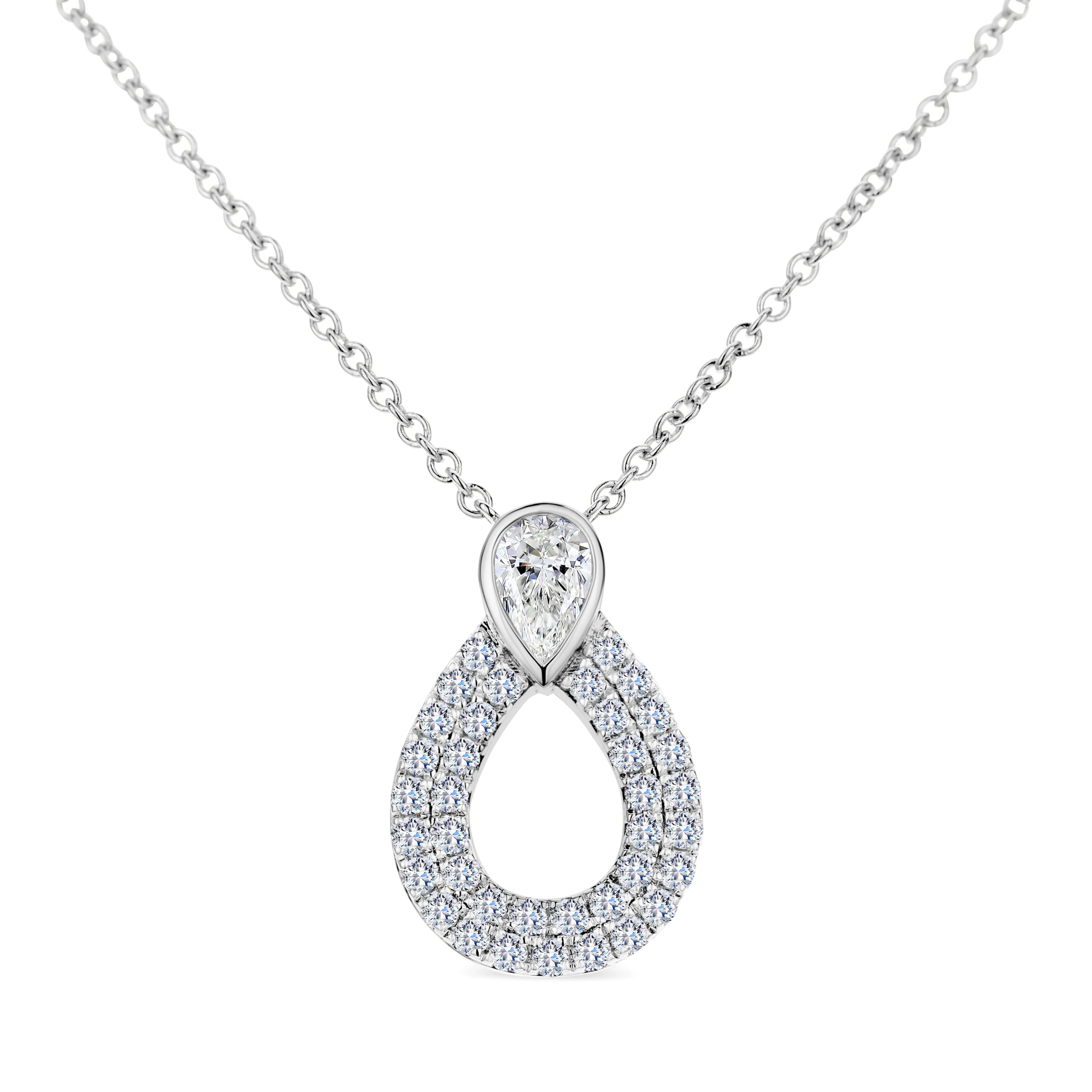 Bandiera Jewellers Diamond Necklace 1.30ct. 18kt yellow gold necklace with 37 round diamonds, total of 0.70cts and one pear-shaped diamond 0.60ct.