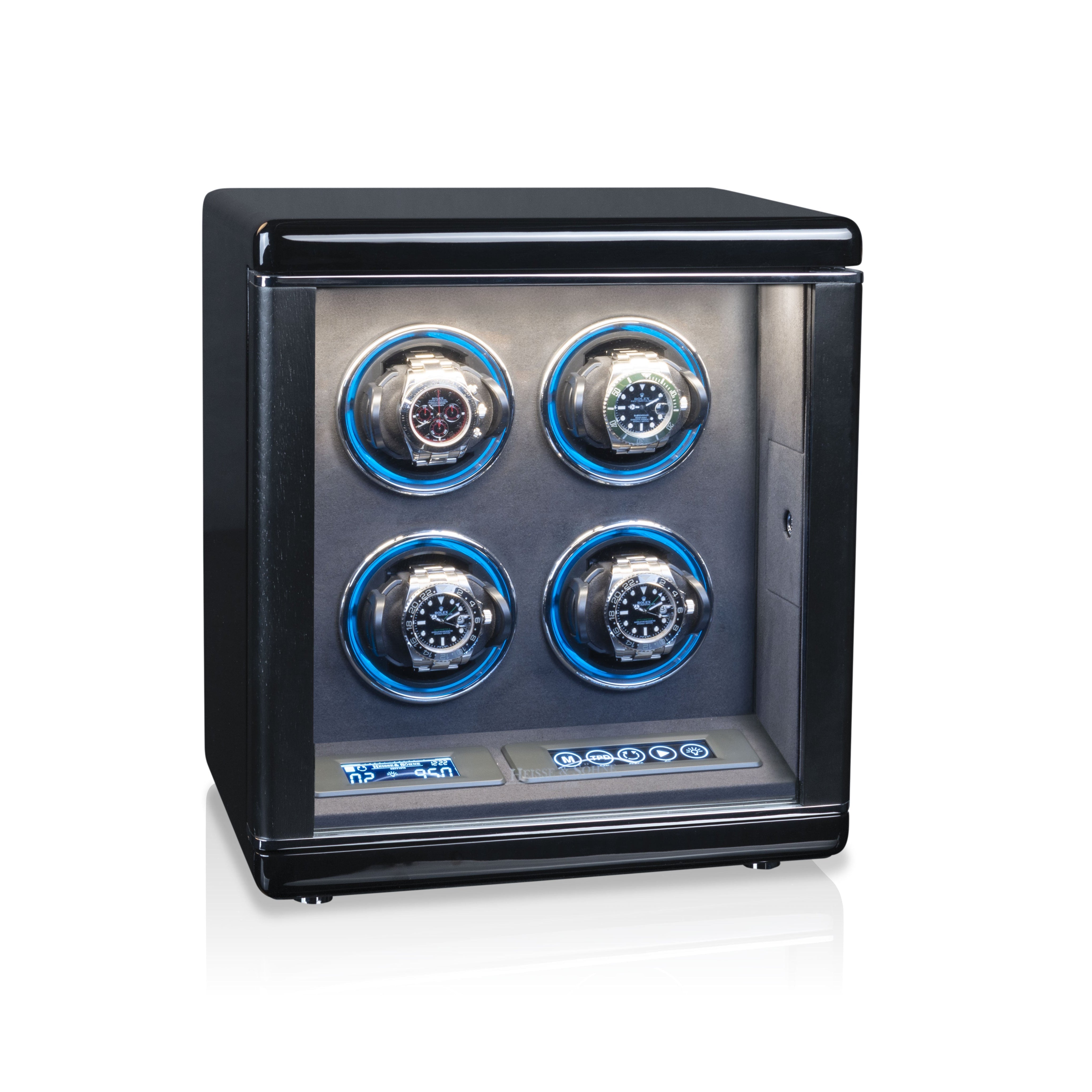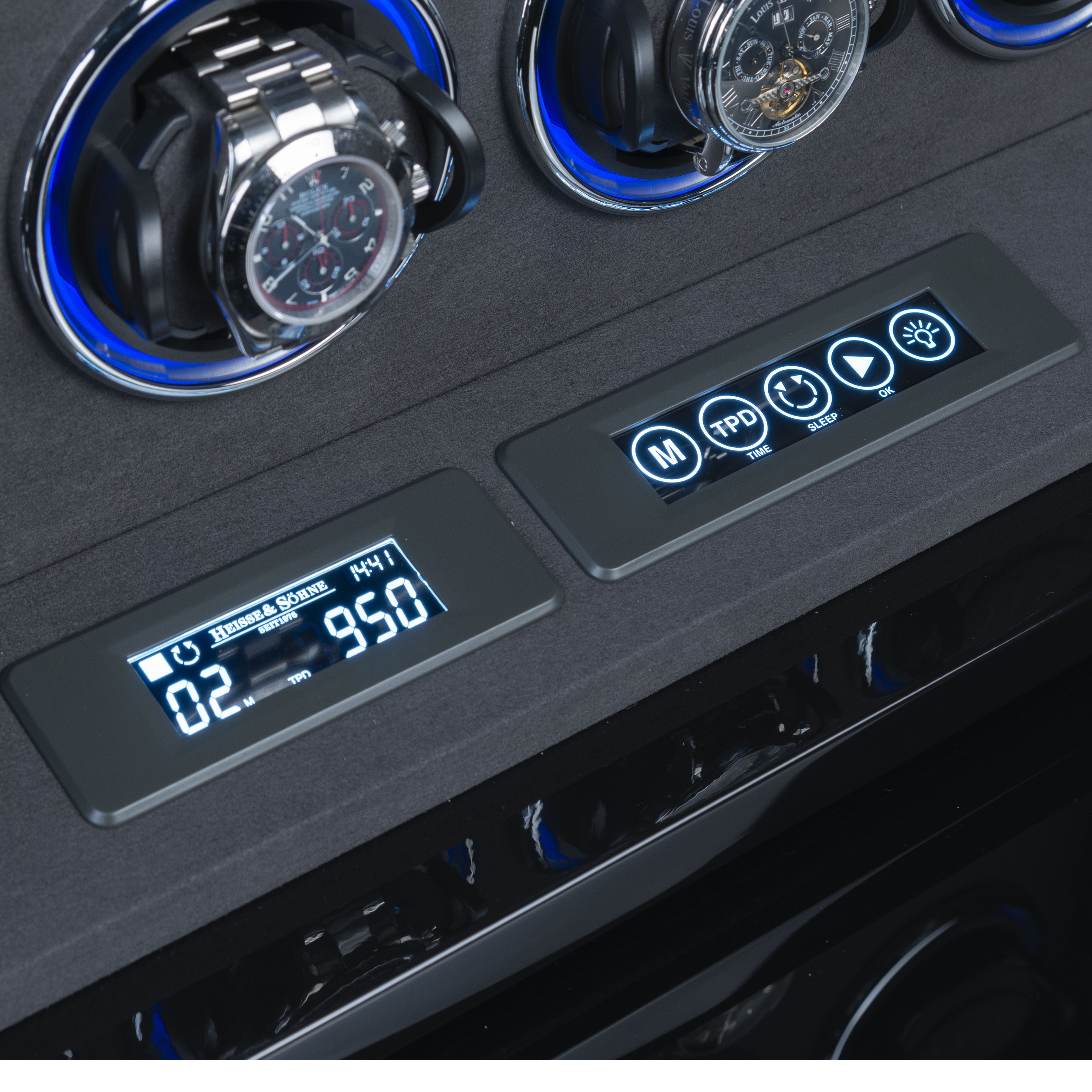 The Chicago range combines precise technology and stylish aesthetics. H&S LCD-Control allows settings to be adjusted effortlessly, while the H&S Premium-Drive ensures extremely quiet winding of the watches. H&S Fin-Protect offers secure protection with fingerprint technology. The design with black high-gloss finish and chrome accents is rounded off by H&S Motion-Light, which sets the scene for the watches in subtle light. Each component in the Chicago series combines functionality and elegance for the safe storage of valuable timepieces.