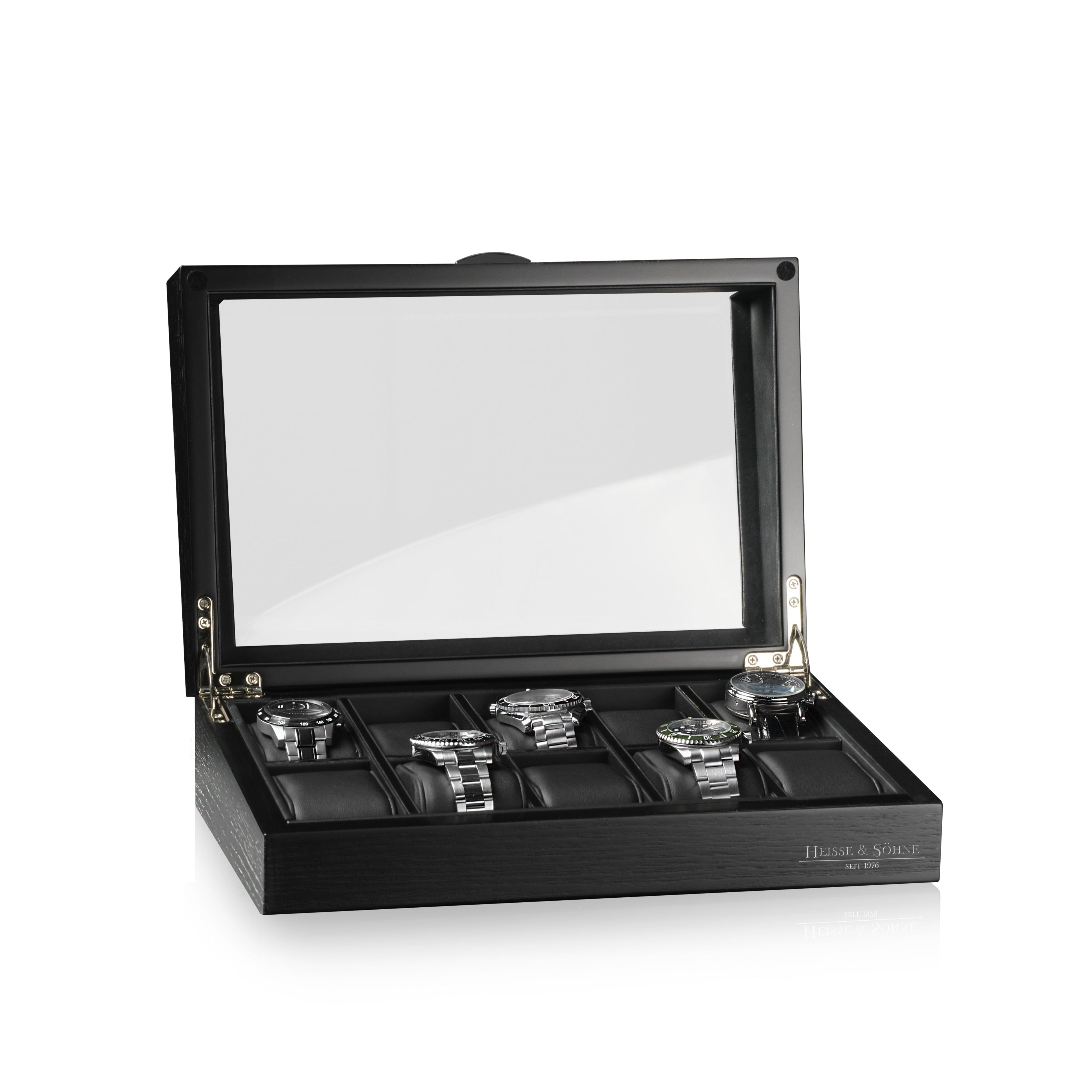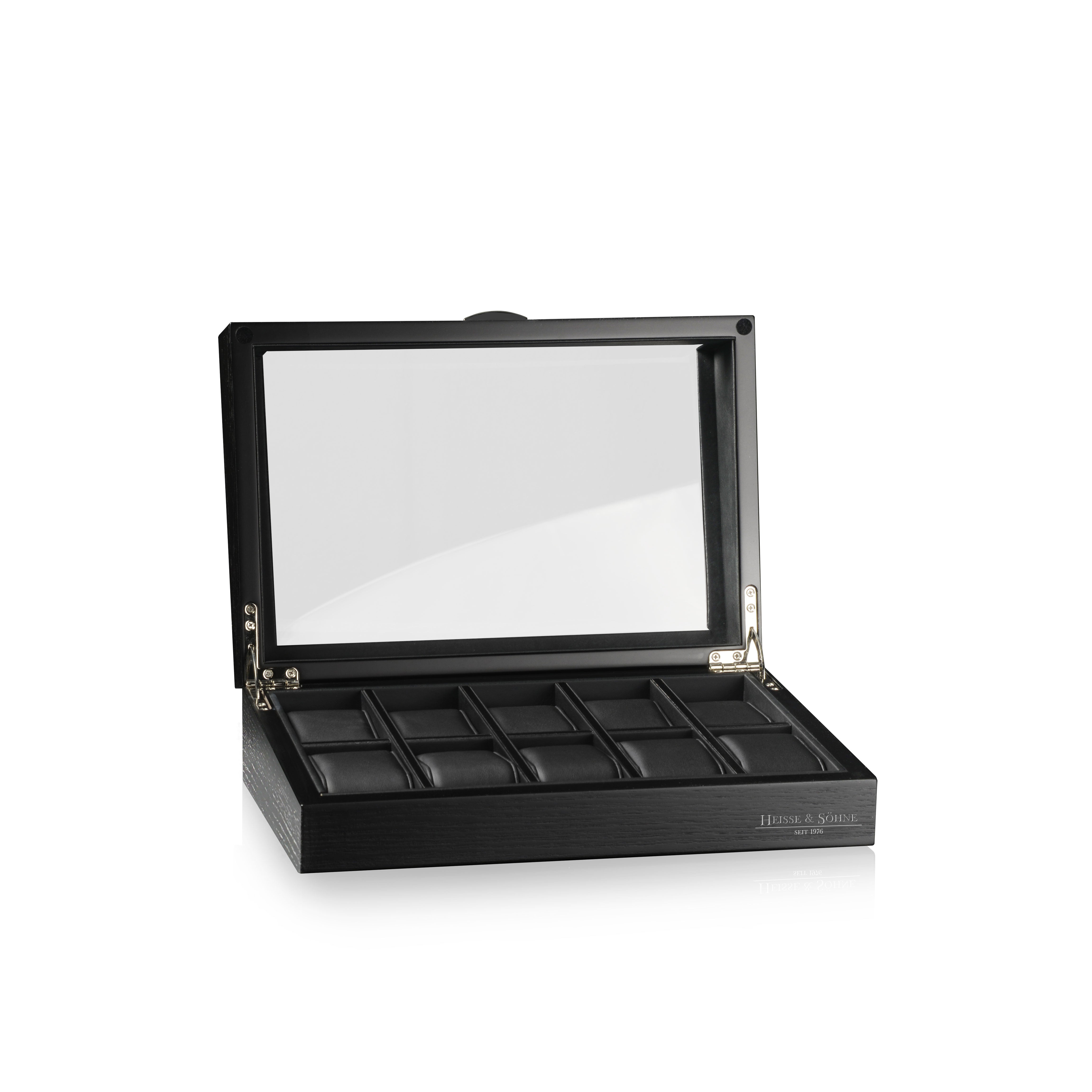 The watch boxes in the Oxford series, veneered with open-pore black ash, are the perfect choice for lovers of understated elegance. The generous viewing window provides a stylish stage for the presentation and safe storage of high-value watches. Inside, soft imitation leather watch cushions with a width of 50 mm ensure optimum hold.