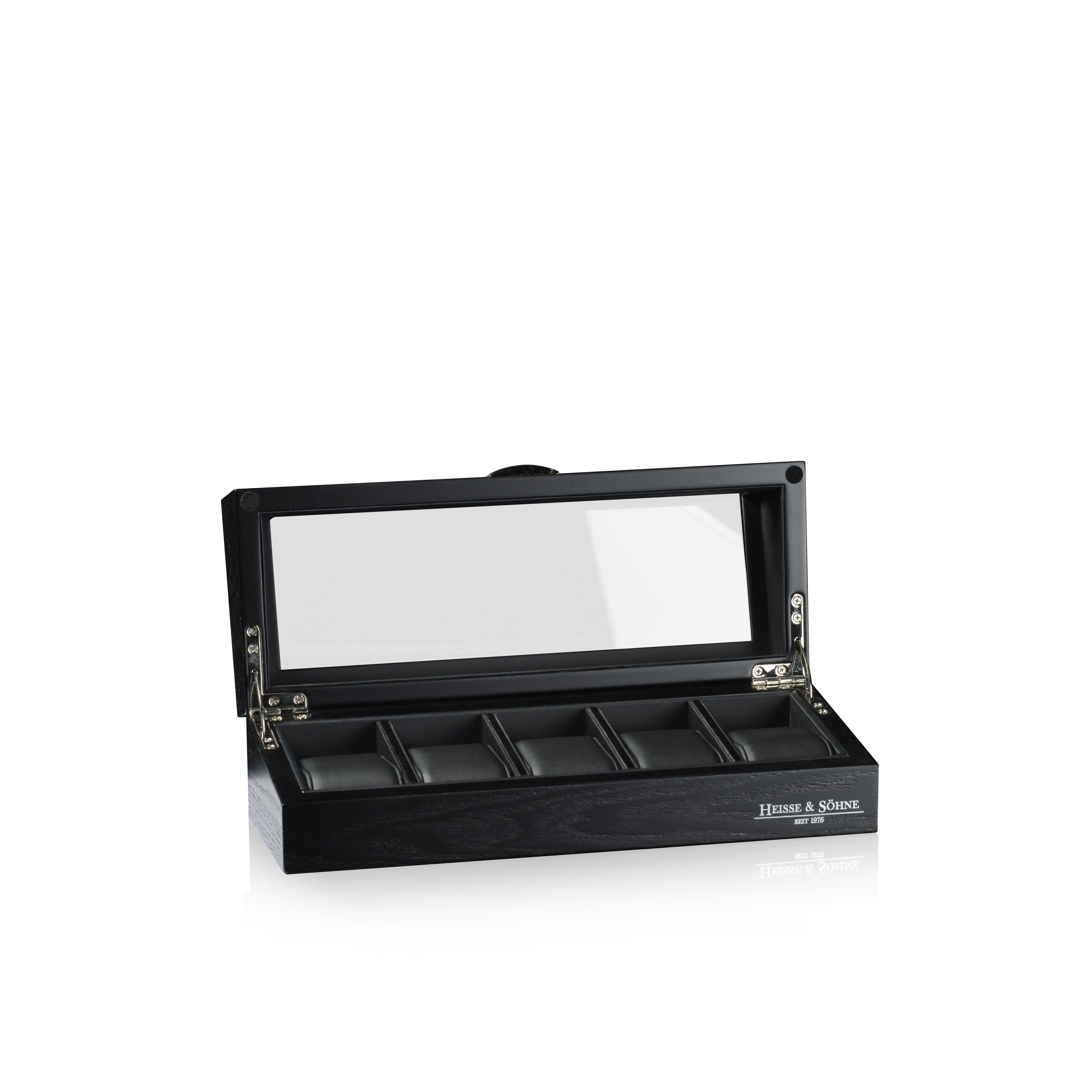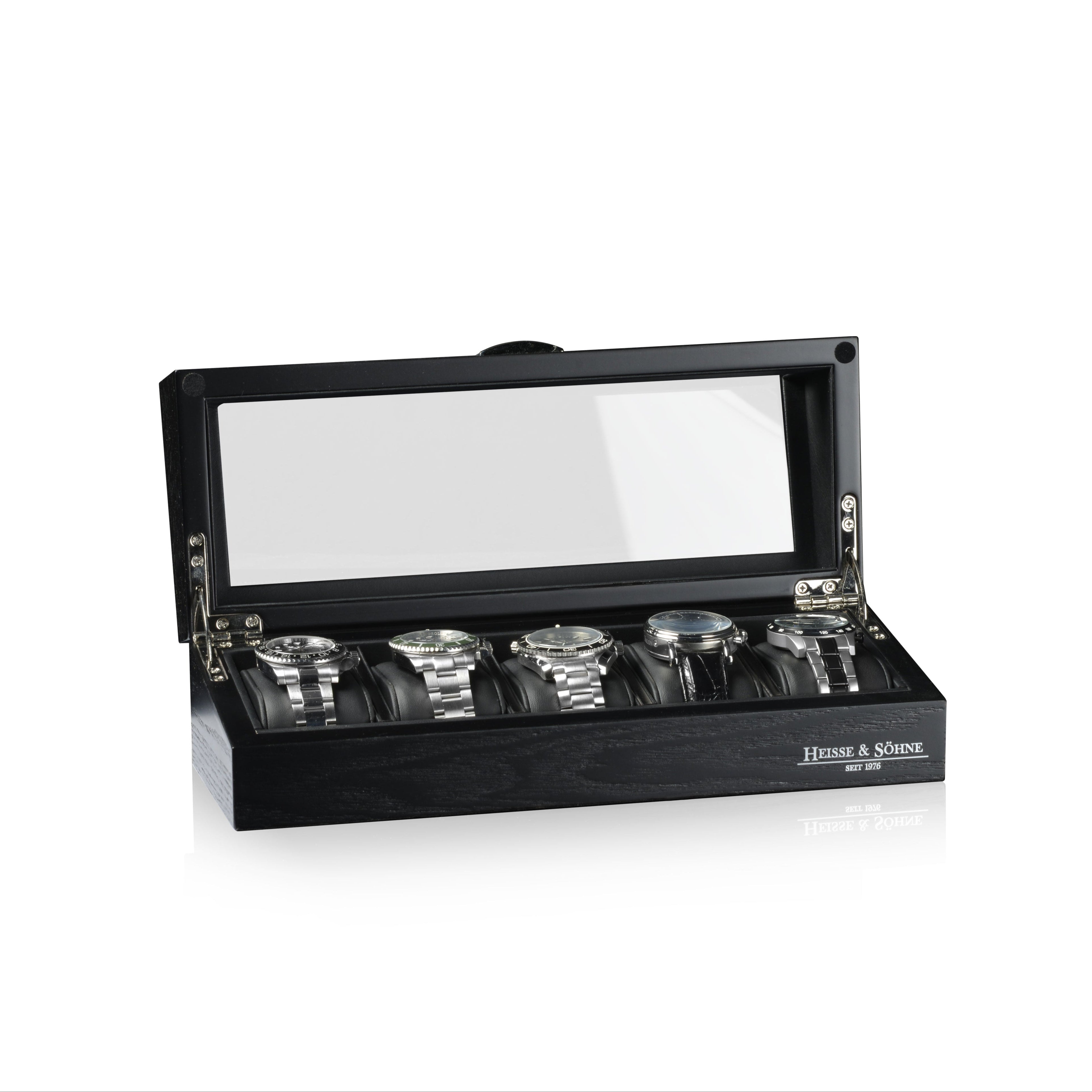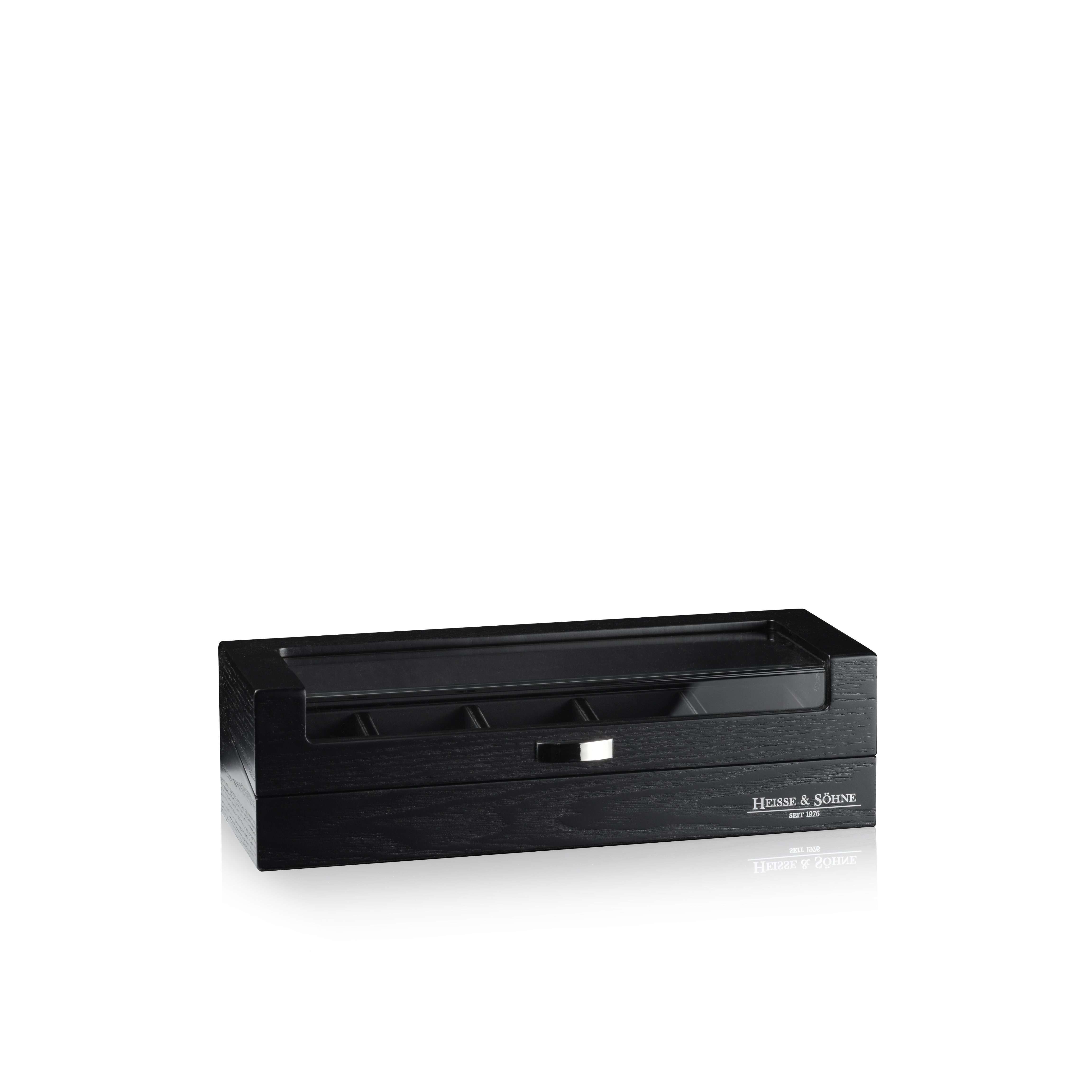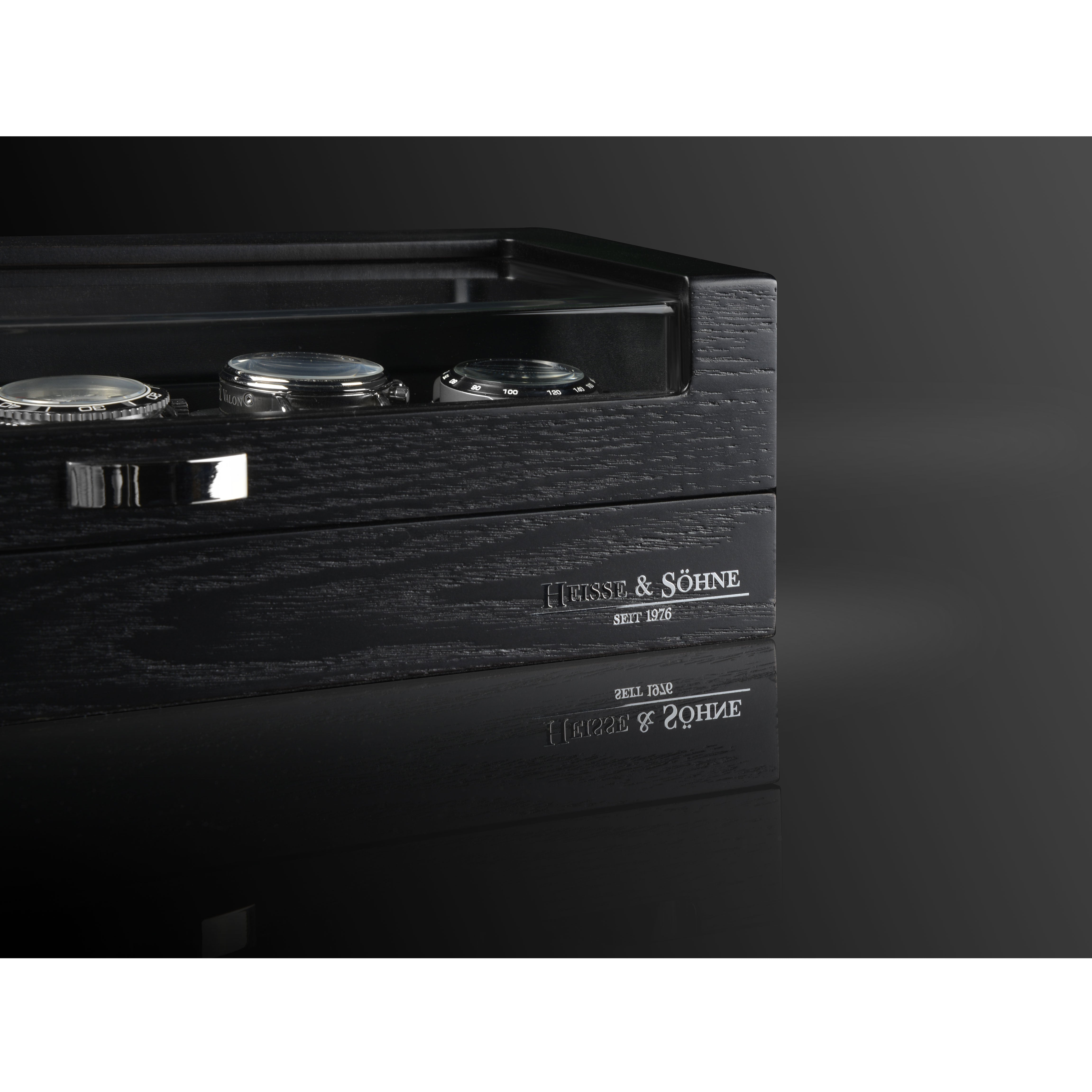 The watch boxes in the Oxford series, veneered with open-pore black ash, are the perfect choice for lovers of understated elegance. The generous viewing window provides a stylish stage for the presentation and safe storage of high-value watches. Inside, soft imitation leather watch cushions with a width of 50 mm ensure optimum hold.